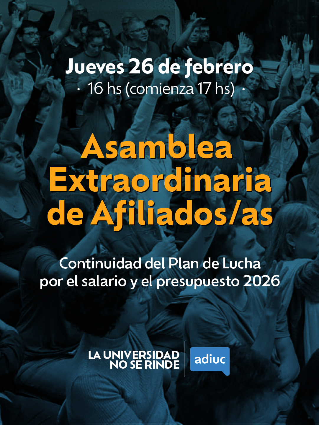 Click aquíHacé tu pedido semanal acáIniciá el trámite AQUÍEntrega hasta el 26 de febrero Marchamos en defensa del trabajo | No a la Reforma Laboral regresivaLa Maestría en Docencia Universitaria abre la preinscripción para su segunda CohorteALOJAMIENTOS | VERANO 2026 – Descuentos exclusivos para afiliados/asParitaria local: logramos la aprobación de la carrera docente para las escuelas preuniversitariasPresentación | Informe sobre presupuesto y salario universitario | VIERNES 19/12, HCSLA UNIVERSIDAD MARCHA CONTRA LA REFORMA LABORAL DE MILEICon una reunión de Mesa Ejecutiva ampliada, la CONADU inicia una nueva etapa¡Fiesta de fin de año! La lucha también se celebraDASPU | El peso del ajuste no puede seguir cayendo sobre las espaldas de las y los afiliadosBALANCE POST ENCUENTRO 2025 DE LA COMISIÓN DE GÉNERO DE ADIUCAsamblea de ADIUC definió la continuidad del plan de lucha2° Jornada en defensa del alimento argentino y ¡FERIAZO! Disfrutá los beneficios para Afiliadxs Asesorías Talleres Otros Beneficios Defendiendo nuestros derechos, ADIUC crece Convenio Colectivo Paritaria Local Delegaciones Gremiales Espacios de formación, investigación y divulgación Posgrado Gratuito (PPG) Observatorio Salario y Presup. Publicaciones Beneficios Convenio entre ADIUC y Cooperativa HorizonteClub Parque Vélez Sarsfield – 10% DESCUENTOLa Casa del Periodista – Villa Carlos PazDescuentos en la Librería Universitaria de EDUVIMPredio Recreativo Quinta AGEPJ – Temporada 2025/2026Deporbas | 15% de descuento en Escuelas de VeranoTarifas preferenciales en instalaciones turísticas de UEPCCOPA V GENERAL PAZ | 10% de descuentoNoticias Marchamos en defensa del trabajo | No a la Reforma Laboral regresiva4 febrero, 2026BOLSONES ESCOLARES 2026: Entrega desde el 11 al 26 de febrero3 febrero, 2026La Maestría en Docencia Universitaria abre la preinscripción para su segunda Cohorte29 diciembre, 2025