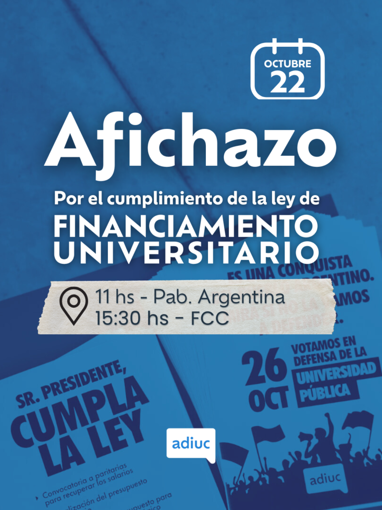• AFICHAZO en defensa de la universidad pública. Nos encontramos a las 11hs. en el Pabellón Argentina y en la Facultad de Cs. de la Comunicación a las 15:30hs.