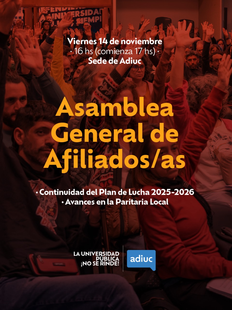 En este escenario crítico, y apostando a sostener el plan de lucha con medidas representativas del conjunto de la docencia de la UNC convocamos la ASAMBLEA GENERAL DE AFILIADOS/AS, este viernes 14 a las 16 en nuestra sede.