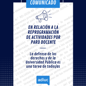Las entradas, junto con los vales de comida y bebida, deberán retirarse en la sede de ADIUC, a partir del jueves 27 de noviembre, de 10 a 19 hs.