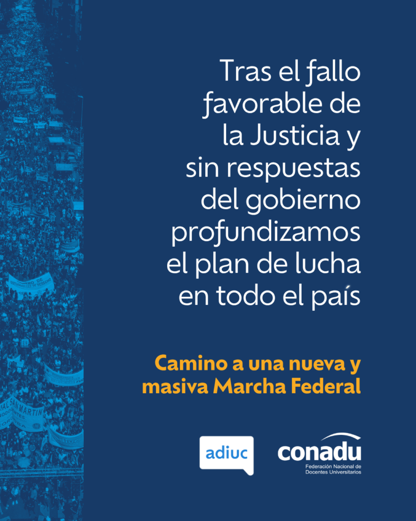 Por otra parte, mientras dábamos inicio a la segunda semana de paro, la Justicia volvió a darnos la razón con un fallo que ordena al gobierno la inmediata aplicación de la Ley de Financiamiento Universitario. Un avance clave, que pone un freno al proyecto de reforma ingresado por el Ejecutivo y, más aún: lo deja sin margen legal para seguir incumpliendo la normativa vigente.