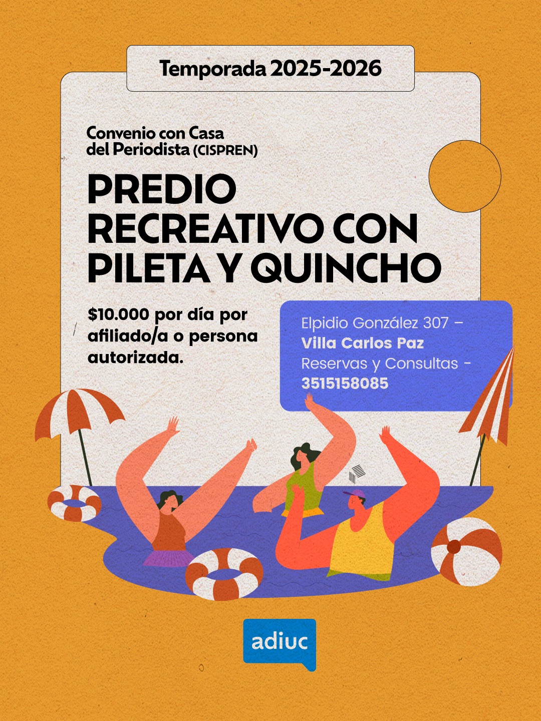 Las y los afiliados/as de ADIUC pueden acceder a La Casa del Periodista – Villa Carlos Paz, en condiciones preferenciales.