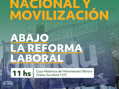 Paro nacional y movilización contra la Reforma Laboral | 19/218 febrero, 2026Conocida la intención del gobierno nacional de tratar este jueves en la Cámara de Diputados su proyecto de Reforma Laboral,…