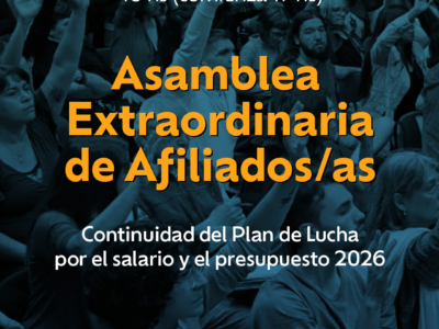 Asamblea Extraordinaria | Jueves 26/218 febrero, 2026En el marco de la ofensiva del gobierno nacional contra la universidad pública y los derechos de las y los…