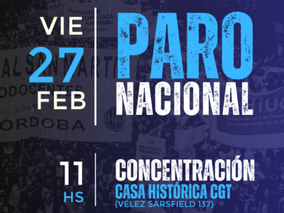 Paro y Movilización en contra de la reforma laboral | 27/225 febrero, 2026Este viernes 27 paramos y marchamos contra la reforma laboral y en defensa del trabajo, de la producción nacional y…